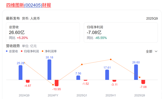 从财报上来看,四维图新的营收从2022年的33.47亿元,增长到了2024年的35.18亿元,实现了5%的增长;同时归母净利润却从2022年的亏损3.36亿元扩大到了2024年的10.95亿元,且2025年没有明显的收窄迹象。