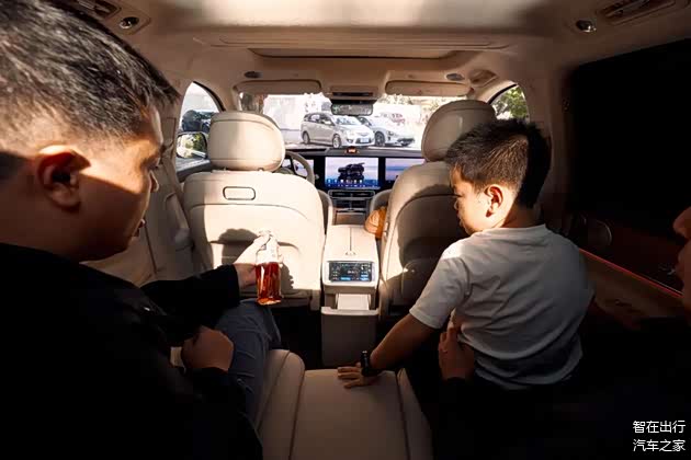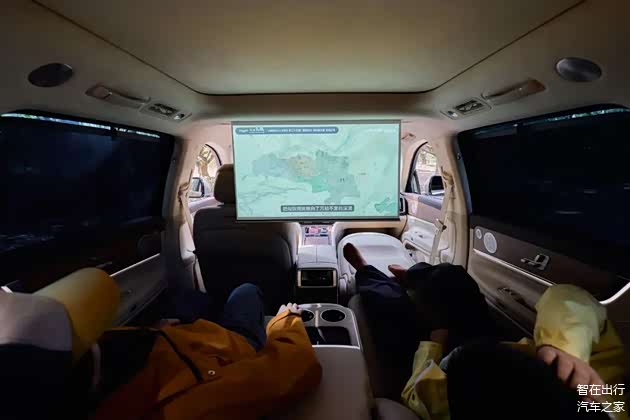 好坐其实很简单,后排大空间特别适合家庭出游多人乘坐,而且还有小孩最爱的智能投影巨幕,可以手机操控屏幕,而且显示屏幕够大且亮度足够,这样带娃可以实现一路不闹,唯一缺点就是容易到了目的地不下车,要赖在车上。