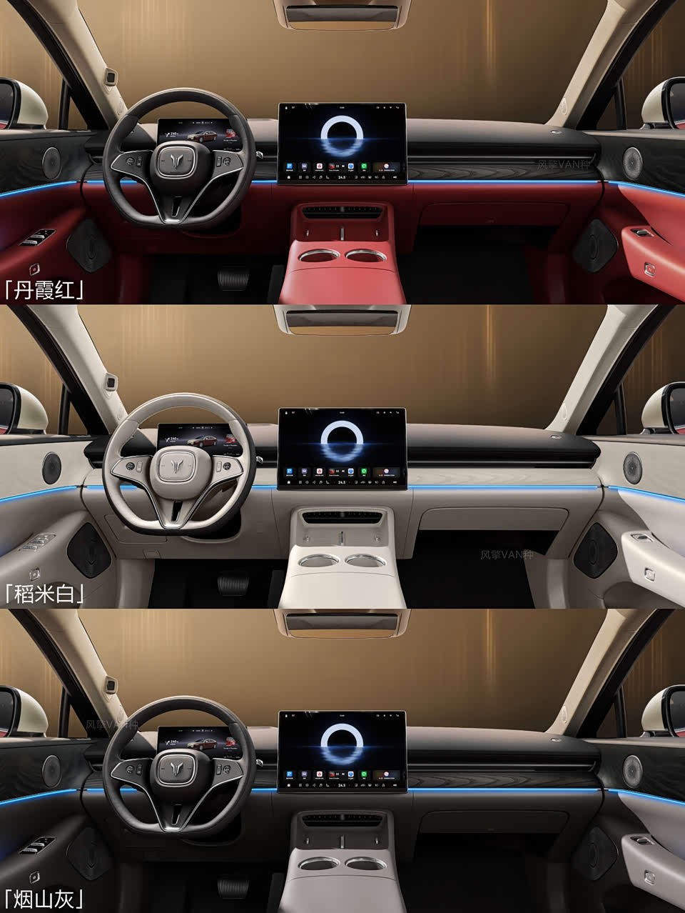 内饰配色部分,岚图追光L提供丹霞红、稻米白和烟山灰三款内饰配色。