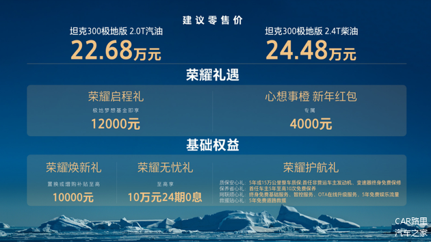 从颠覆硬派越野市场格局,到精准覆盖极寒细分场景,坦克300极地版的上市,不仅延续了坦克300硬核实力的核心优势,更以科考级可靠性、场景化定制配置,为深度越野爱好者提供了更优解,再加上22.68万元的起售价,让这份极地级越野能力无需高昂代价,也让坦克300的市场统治力进一步巩固。
