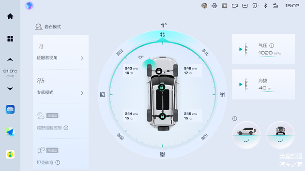 越野配置同样毫不妥协:新增岩石模式与专家模式,驾驶模式从7种扩展到9种,新手也能像老司机一样精准应对复杂路况。