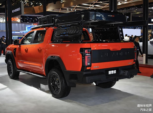 尺寸上,进阶版与高阶版主打“实用大空间”,采用5650/1960/1915毫米的修长身形,3510毫米超长轴距配合1820×1580×530毫米的长货箱,能轻松容纳工程器械或户外装备,满足重载需求。越野版则以“硬核穿越”为核心,5370/1975/1955毫米的紧凑尺寸搭配230毫米满载离地间隙,大幅提升通过性,面对交叉轴、碎石路等复杂路况也能从容应对。车身线条平直规整,引擎盖隆起的筋线增添肌肉感,车门下方的防刮饰板则能有效抵御日常使用中的磕碰。车尾部分,与前脸相呼应,两侧竖直排列的尾灯,搭配中间熏黑的饰条以及内部的字母标识等等,都进一步彰显起身份。