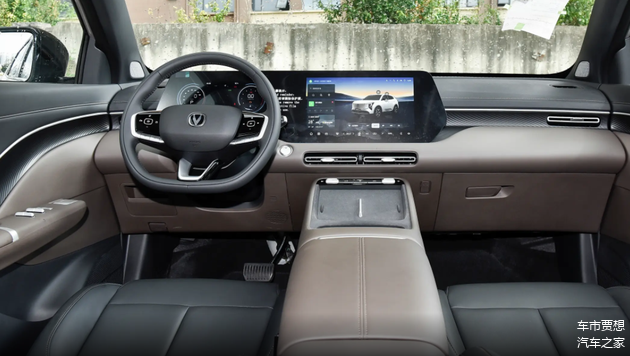 新款CS55 PLUS的内饰设计则更前卫,走极简路线,仪表屏和中控屏组成了一个大联屏,视觉上冲击力很强。搭载的也是7纳米芯片,车机表现也不错。不过,14.6英寸的中控屏不是标配,低配版为12.8英寸,无论视觉还是体验都弱不少。