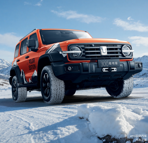 外观上,坦克300极地版延续了家族方正硬派的造型,但加入专属越野元素。如专属“极地锋芒”拉花,搭配极地橙专属车漆,视觉上呼应“极地”主题。