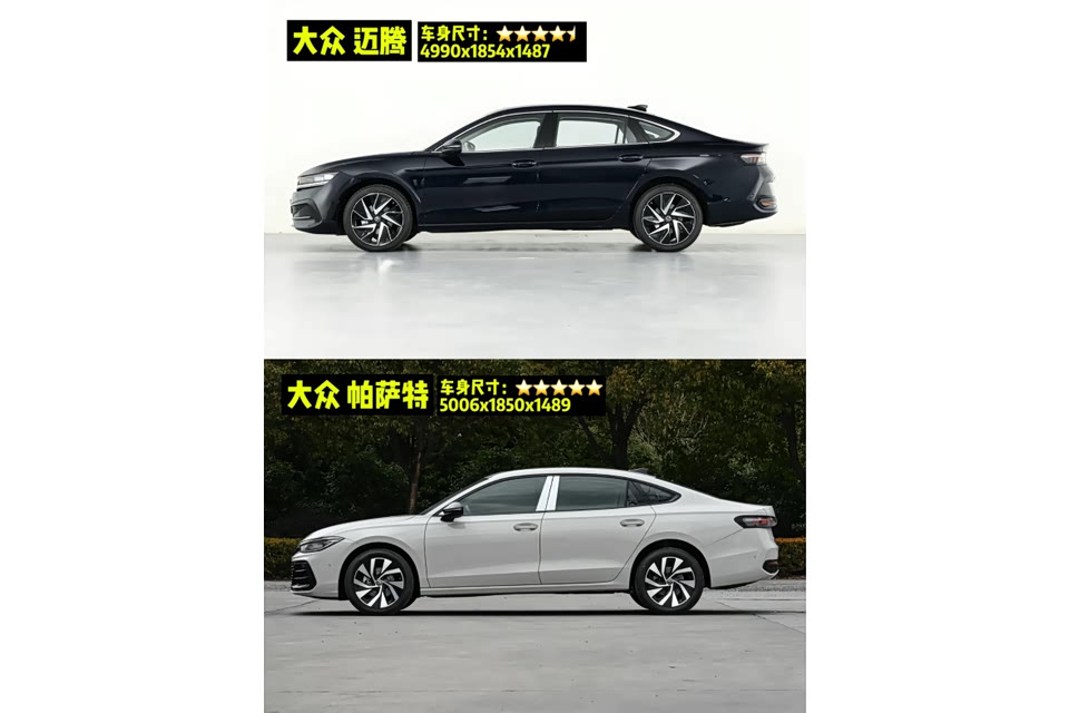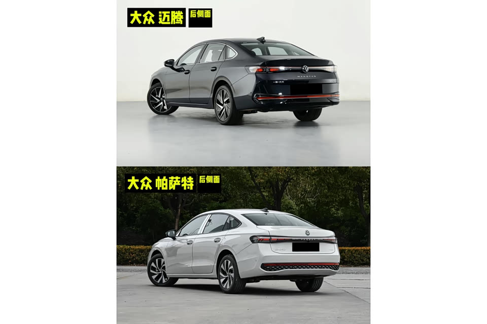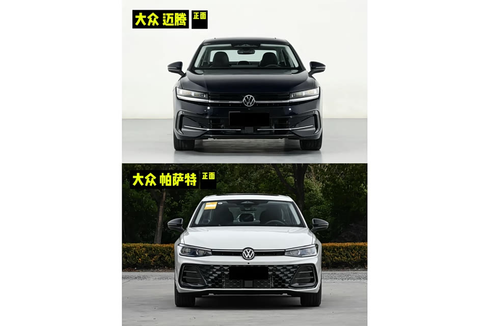 • 迈腾B9:贯穿式灯带 发光Logo一体化设计,线条硬朗方正,典型德系商务稳重感,车宽更占优(1854mm)。