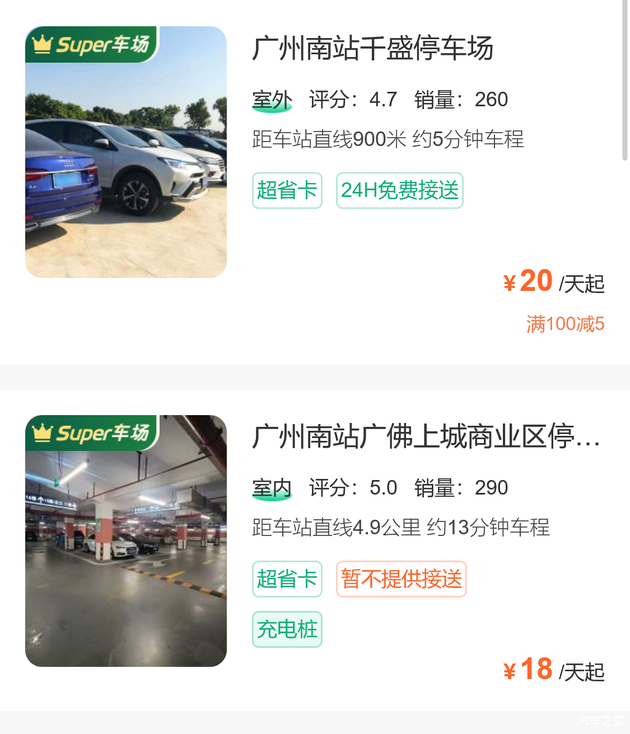 要想停到这些附近的停车场,可以通过淘车位小程序来预订,在上面可以查看各个停车场的详细收费、环境如何、位置在哪里、离南站多远、接驳或者走路要多久,甚至还有旅客对停车场服务环境的评分评价。