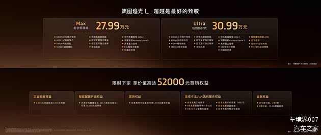 即日起,选购岚图追光L的用户可享受价值高达5.2万元的首销权益。追光L的到来,不仅以领先的三电技术以及极寒环境下稳定快充的硬核实力破解了北方用户冬季用车焦虑,更在智能化、底盘操控等核心维度,打造了旗舰级体验,用技术重塑豪华标杆,为追求真正价值的用户,提供了一份超越期待的答案。