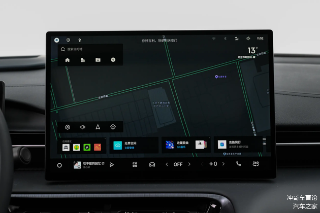 在基础硬件配置上,吉利银河 E5 搭载了龍鹰一号座舱芯片,匹配 Flyme Auto 车机系统,流畅性和功能表现都很不错,起码能轻松下载各类娱乐软件。