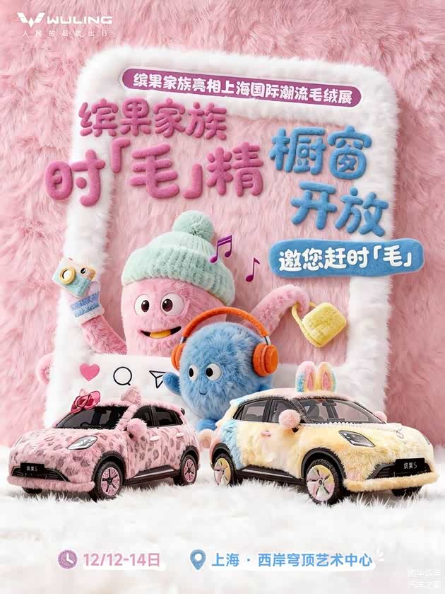 上海的冬日快乐被五菱承包了!12月12日-14日,上海西岸穹顶艺术中心的国际潮流毛绒展期间, 五菱缤果S将带着两款软萌到犯规的毛绒改装车来炸场——全身裹满绒毛的粉红豹豹车和彩虹兔兔车,直接把“冬日时「髦」精 暖意正缤纷”的主题拉满。作为上市两个月就卖出超4万台的热门代步车,这次缤果S把车展变成了治愈系打卡地,不管是毛绒控还是准备买车的朋友,这个周末都值得冲!
