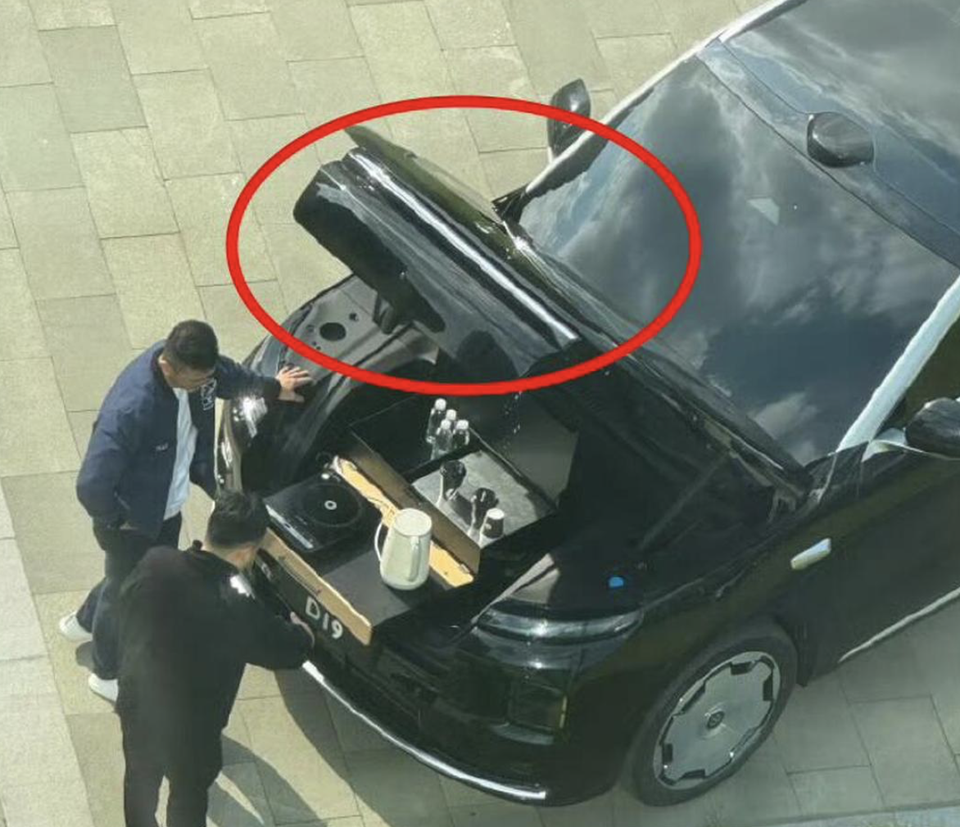 如果说当年极石汽车的尾门小厨房尚可捏着鼻子接受,那么后续车企营销的“邪修”招数那是一招更似一招高。LS9推出的 “移动冲凉房” 引发热议 ,开车累了,来洗个澡吧;第三代蓝电E5plus是将 “车载生活场景” 玩出了新高度,该车的后排中央扶手可展开为小型茶台,搭配隐藏在后备厢的双电磁炉,能实现 “车载泡茶、户外烹饪” 等功能;零跑D19把这个场景放在了前备箱,内置了220V交流电源接口,咖啡机、电磁炉、烧水壶等家用电器可直接接驳使用,再搭配隐藏式排水通道,可轻松实现“煮茶、炒菜、涮火锅”等烹饪场景。