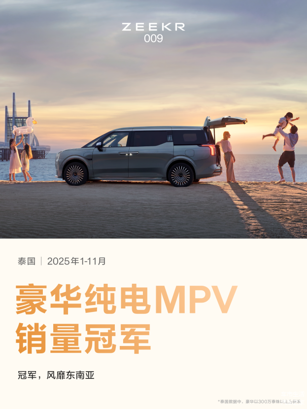 据悉,今年1-11月,极氪已成功登顶埃及纯电品牌销量冠军。此外,极氪还稳居哈萨克斯坦豪华纯电市场第二,跻身巴西纯电品牌销量前三甲。旗下车型 极氪7X开启交付后,连续3个月蝉联中国香港市场中型SUV销冠,登陆澳洲首周订单破千,并成为澳洲市场11月6万澳币以上SUV销量冠军。极氪009则稳居1-11月中国40万以上MPV销量冠军、中国香港MPV销量冠军,并在泰国和马来西亚获得豪华纯电MPV销量冠军。