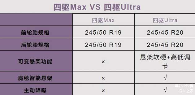 其实两款车最大的区别就是悬架,四驱Ultra版搭载了可调节软硬和高低的悬架,无论是整车的通过性还是舒适性上都会有更好的体验,这大概也是3万差价的主要体现。