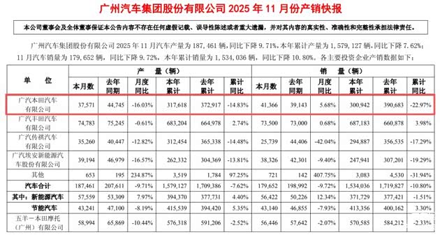 在眼下,摆在林志斌面前的局面不可谓不艰巨,广汽集团发布的11月产销快报显示,广汽本田11月销量为4.1万辆,同比去年增长了5.68%;但整个前1-11月,广汽本田累计销量30万辆,同比下滑22.97%,是广汽集团体系内跌幅最大的板块,以岌岌可危来形容广汽本田也并不为过。