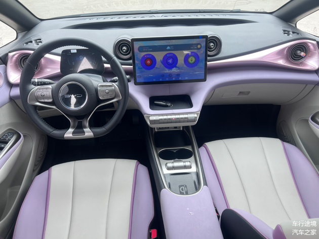 坐进车内,两款车的“性格”差异更明显,一个懂女生的日常实用,一个懂女生的精致仪式感。 比亚迪海豚的内饰延续海洋美学,细节满是巧思。12.8英寸自适应旋转悬浮Pad是绝对核心,搭配DiLink智能网联系统,支持语音控制、OTA升级,反应速度丝滑,还能根据APP自动旋转横竖屏,追剧、导航都方便。用料特别良心,车内大面积软质包裹,搭配仿皮方向盘和一体式仿皮座椅,触感细腻,完全不像10万级车型的质感。50W手机无线充电、后排隐私玻璃等配置超实用,女生补妆时放手机,随手就能充电,不用纠结数据线。