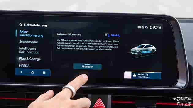 测试开始,我们从克拉科夫的寒冷清晨启程,车内温度在零下几度,恰好是电动车表现的最佳环境。即使在零下的低温条件下,IONIQ 6的制动系统依旧表现稳定,制动表现也非常可控。电池的预热功能?没问题!通过导航输入充电站地址,IONIQ 6可以自动为电池进行预热,或者你也可以手动操作,尤其当导航并没有与现代汽车的系统相连时,手动控制变得尤为重要。