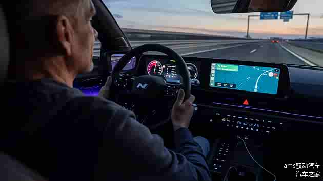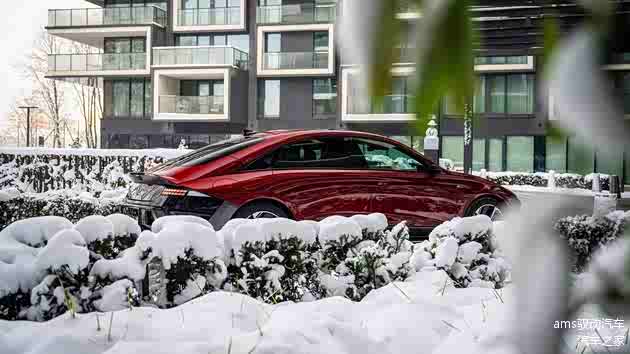 车辆的矩阵式灯光在道路上提供了良好的照明效果,同时悬挂系统的舒适性表现也相当不错。起初,N-Line版本的较大轮胎让车辆行驶时显得有些“硬朗”,但在经过一段时间后,它能够有效地吸收较大的路面颠簸。再加上车身稳定的转向表现,IONIQ 6在湿滑的雪地上也能稳定前行,只是雷达传感器容易因污垢而失灵。