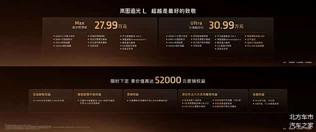 即日起,选购岚图追光L的用户可享受价值高达5.2万元的首销权益。追光L的到来,不仅以领先的三电技术以及极寒环境下稳定快充的硬核实力破解了北方用户冬季用车焦虑,更在智能化、底盘操控等核心维度,打造了旗舰级体验,用技术重塑豪华标杆,为追求真正价值的用户,提供了一份超越期待的答案。