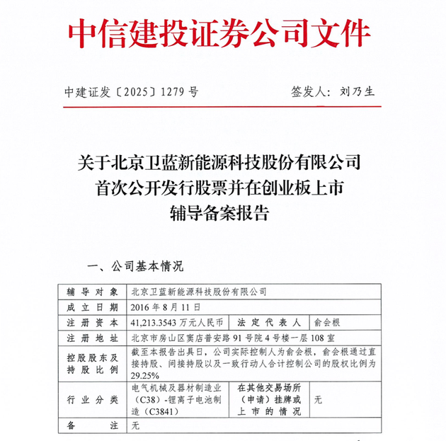 ▲北京卫蓝新能源科技股份有限公司与中信建投证券签署上市辅导协议