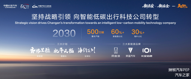新央企、新长安、新使命,中国长安汽车将坚定推进第三次创业——创新创业计划,通过持续打造新质生产力,全力以赴实现“把民族汽车品牌搞上去”的目标,致力于打造具有全球竞争力、拥有自主核心技术的世界一流汽车集团,铸就世界一流汽车品牌。持续为全球用户提供高质量产品,为中国汽车强国建设、民族复兴伟业贡献长安力量。