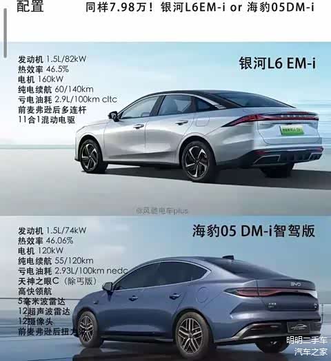 在如今汽车市场竞争日趋激烈的环境下,消费者在选择购车时,价格往往成为了一个重要的考量点。当面对价格相近的吉利银河L6 EM-i与比亚迪 海豹05 DM-i时,该如何做出抉择呢?这两款车型都以7.98万元的价格吸引了市场的广泛关注。那么,究竟哪一款车更加值得消费者入手?