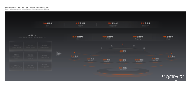 作为行业安全技术的先行者与引领者,吉利在“全域AI”技术体系的赋能下,以“AI为纲 责任为本”,基于原有的“全域安全”技术体系进阶打造“全域安全2.0”技术体系。结合智能时代的安全新需求和新挑战,“全域安全2.0”技术体系秉持“以人为尊”理念,通过技术升级、能力突破与范式创新,将侧重“整车安全”的视角升级为“人-车-路-云-星”的生态视角,旨在贯穿用户出行全场景、覆盖出行全领域、联动出行全生态;并以“生命零伤亡、健康零危害、财产零损失、隐私零泄露”四大安全愿景为指引,逐步构建的一套为消费者提供全面的安全保障技术体系。