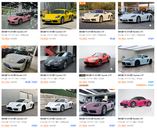 例如保时捷Cayman与Bosxter,2.7升H6发动机,目前14年左右车型16万起;后期款的718,最低也降到了20万之内。这些可都是当年落地最少70万+的车型,顶着保时捷品牌光环的跑车,这个价格真的很难不让人心动。