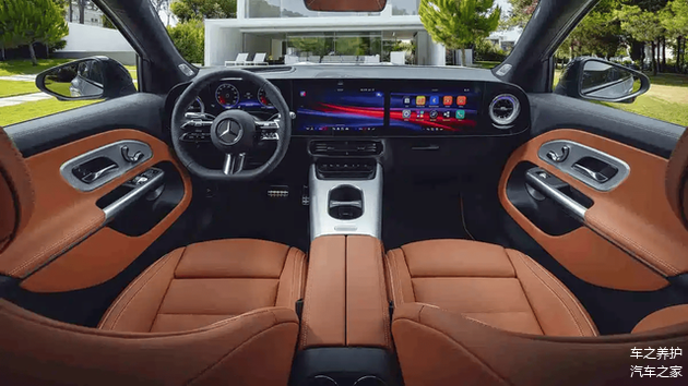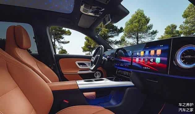 进入车内,豪华感与科技感的提升更为明显。新一代GLB的座舱核心是一套由10.25英寸全液晶仪表、14英寸中控触摸屏及可选装的14英寸副驾娱乐屏组成的全新大联屏,官方称之为“奔驰超级屏幕”。其图形界面由游戏引擎驱动,流畅度和视觉效果有显著提升,车机内部搭载了奔驰最新的第四代MBUX智能交互系统,并内置了基于ChatGPT4o大模型开发的MBUX虚拟助手,人机交互不再局限于刻板的指令,而是能够进行更自然、多轮次的对话。