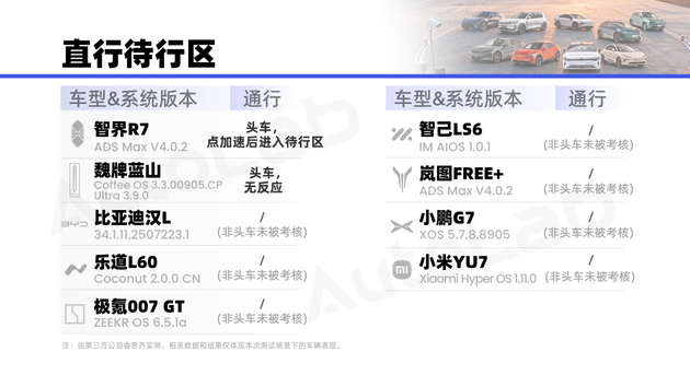 蓝山这个版本还没上VLA,不具备功能;智界R7认识地面上的直行待行区,但即便有文字提示也不会主动进去,驾驶员给了脚加速后才会开进去。