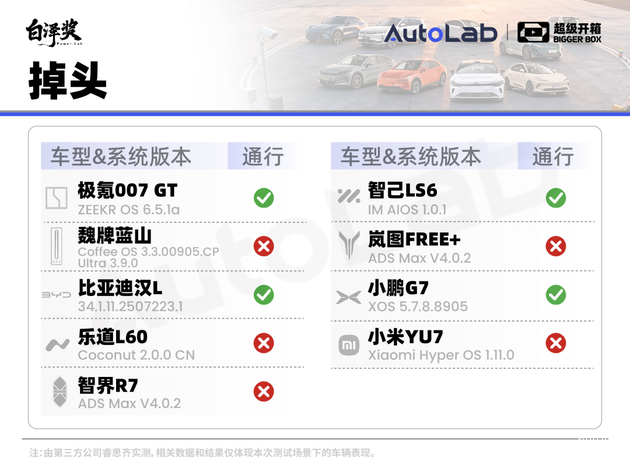 岚图FREE+和小米YU7都因为错误走成了地面,没完成通行。