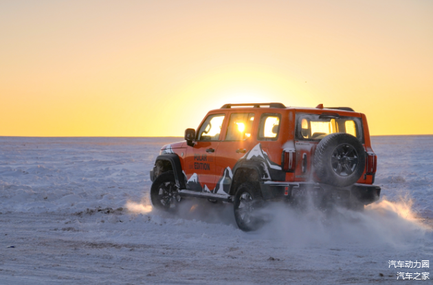 这款坦克300极地版的外观造型与普通版本的坦克300有着明显的差异性,外观是橙色的造型,并且有着大量的拉花设计,花纹采用了极地荣耀徽章以及极地锋芒的拉花设计,所以说整车的辨识度非常高。当然了,整体外观造型还是与普通版车型保持一致,比如匹配了圆形复古的大灯,出色的离地间隙,原厂自带的行车踏板,而且车头部分还采用了电动绞盘设计;尾部采用了备胎后挂的造型。对于这些设计,我们自然是非常熟悉的,是真正越野车必备的专业设计。
