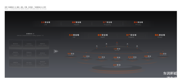 作为行业安全技术的先行者与引领者,吉利在“全域AI”技术体系的赋能下,以“AI为纲 责任为本”,基于原有的“全域安全”技术体系进阶打造“全域安全2.0”技术体系。结合智能时代的安全新需求和新挑战,“全域安全2.0”技术体系秉持“以人为尊”理念,通过技术升级、能力突破与范式创新,将侧重“整车安全”的视角升级为“人-车-路-云-星”的生态视角,旨在贯穿用户出行全场景、覆盖出行全领域、联动出行全生态;并以“生命零伤亡、健康零危害、财产零损失、隐私零泄露”四大安全愿景为指引,逐步构建的一套为消费者提供全面的安全保障技术体系。