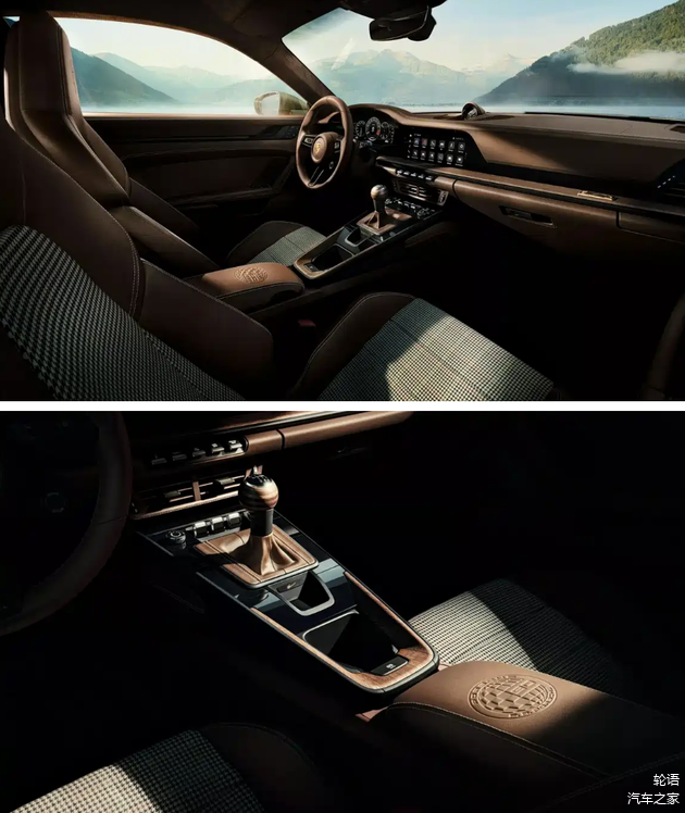 内饰是此次限量版的核心亮点,其设计同样向大师的私人品味致敬。座椅采用松露棕皮革与特殊织物混搭材质,织物部分的图案灵感直接源自F.A. Porsche生前最喜爱的一件运动外套,融合了黑、绿、松露棕、奶油及波尔多红多种色彩。相同的定制织物也被运用于手套箱与前备厢内。