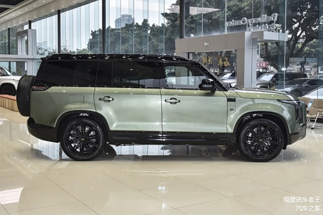 先说这面相,极石ADAMAS在原先硬朗的方盒子造型上做了些精修。车身同色的前格栅边框、封闭式的前杠细节,配上新的21英寸大轮毂,尤其是新增的“流沙金”车色,让它少了几分粗犷,多了几分精致和户外装备的质感。它不像理想L7那样用流畅圆润的线条传递温馨的家庭感,而是用一种更方正、更强调体量感的方式,彰显自己的“硬派豪华”身份。开它出去,别人不会认错成理想,这就是它设计上成功的第一步。