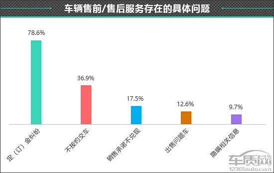 通过进一步调查得知,车主对于2025款小米YU7的售前/售后服务抱怨多集中在销售问题,这一点也体现在“车辆售前/售后服务存在的具体问题”中。其中,“定(订)金纠纷”问题占比最高,还有一些车主反馈其存在“不按约交车”等情况。