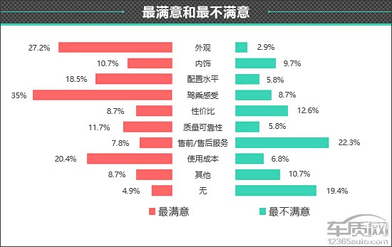 在衡量一款车型驾乘感受如何时,每个人所看重的部分不尽相同。在此次调查中,看重“驾驶感受”的车主占比较高,达到43.7%。可见虽然是一款纯电SUV,但消费者还是希望其能够在日常代步时能够提供出色的驾控体验。