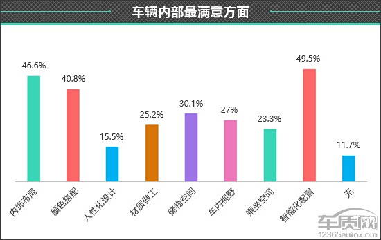 而在针对2025款小米YU7内部情况的调查中,有49.5%的车主对“智能化配置”表示肯定。另外,“内饰布局”和“颜色搭配”也得到了车主的广泛认可,占比分别为46.6%和40.8%。