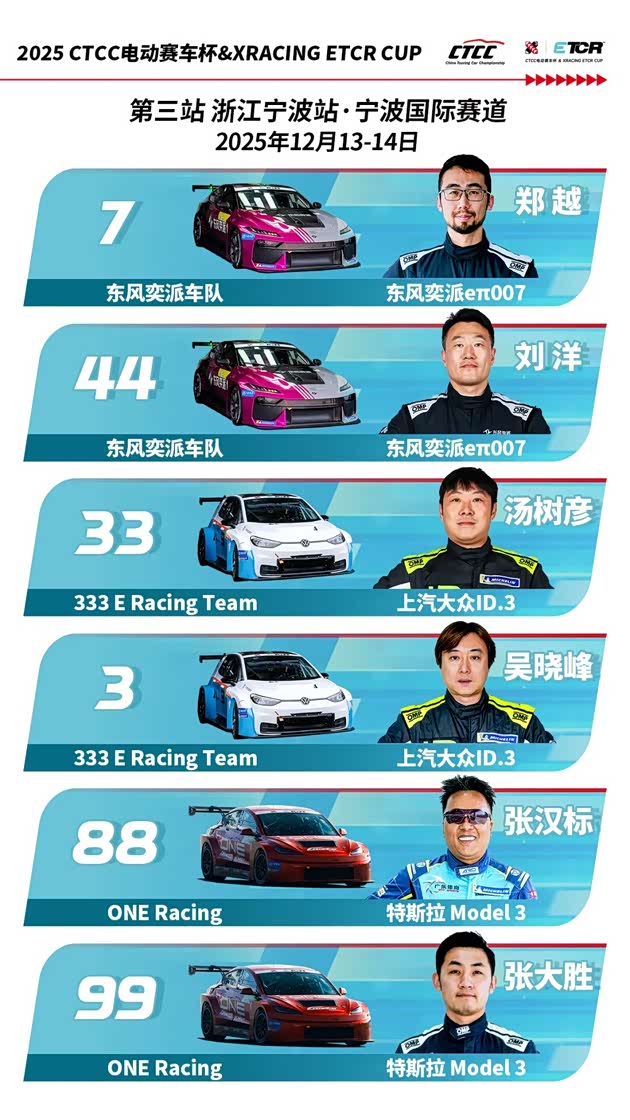 当下国内唯一职业电动赛车赛事——2025赛季CTCC电动赛车杯 & XRACING ETCR CUP即将迎来最终的决战。本年度第三站,也是收官之战,将于12月13日至14日在风景秀丽的浙江宁波国际赛道激情上演。历经前两站的激烈角逐,车手积分榜上的争夺已趋于白热化,所有目光都聚焦于此,年度总冠军的悬念将在此揭晓。