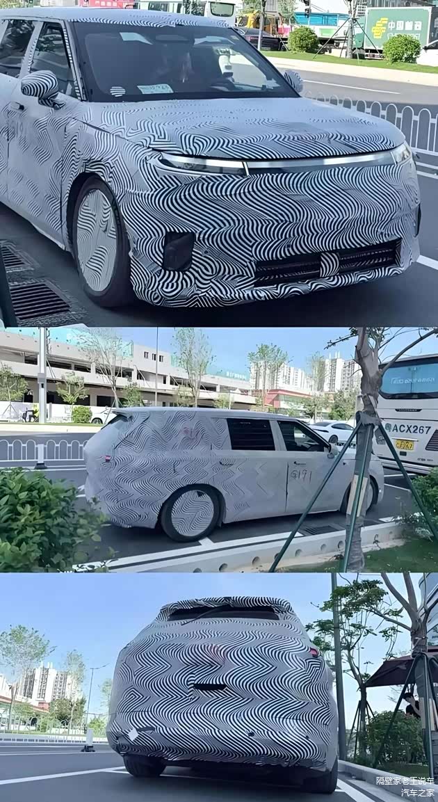 从目前曝光的图片看,新车整体造型方正硬朗。前脸是封闭式设计,配上分体大灯和一条贯穿日行灯带,科技感没得说;侧面线条干净利落,隐藏门把手、无边框后视镜这些细节也都没落下。整体风格比现款小鹏车型更沉稳、更有气场。尤其是全黑版本,往那一停,还真有几分路虎揽胜的影子!当然,只是神似而已,毕竟人家小鹏走的是亲民路线。