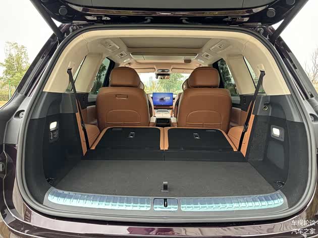 岚图泰山车身尺寸为5230×2025×1817mm,轴距达到3120mm,得房率高达86.8%,真正实现“每个座位皆为主座”的平等舒适理念。第二排进入第三排通道宽度达180mm,第三排魔术折叠座椅支持6座、5座、4座灵活切换。后备厢容积可在305L至1193L之间扩展,满足多场景载物需求。