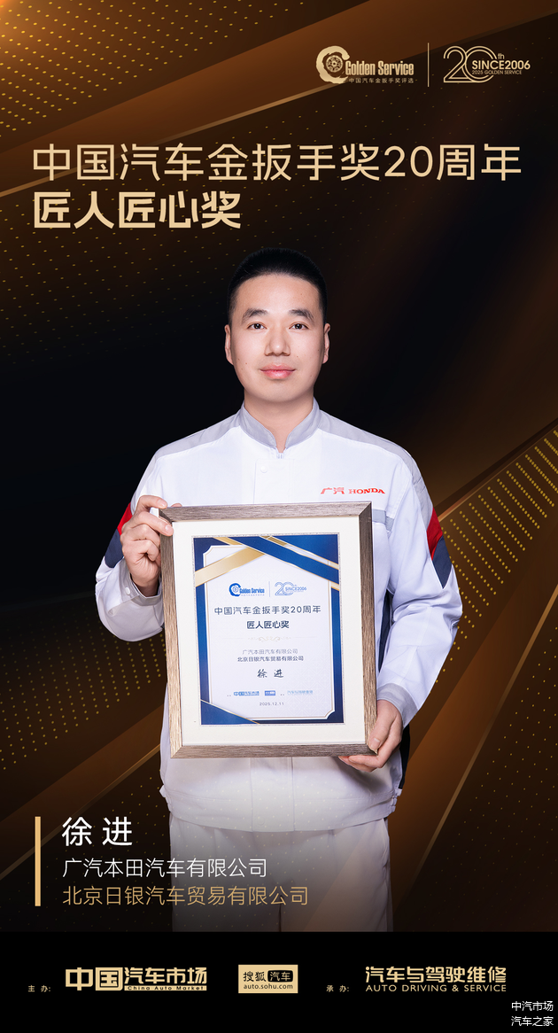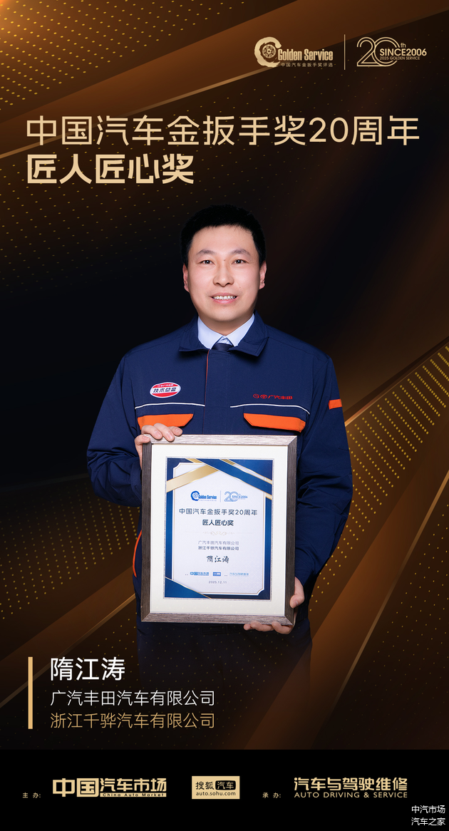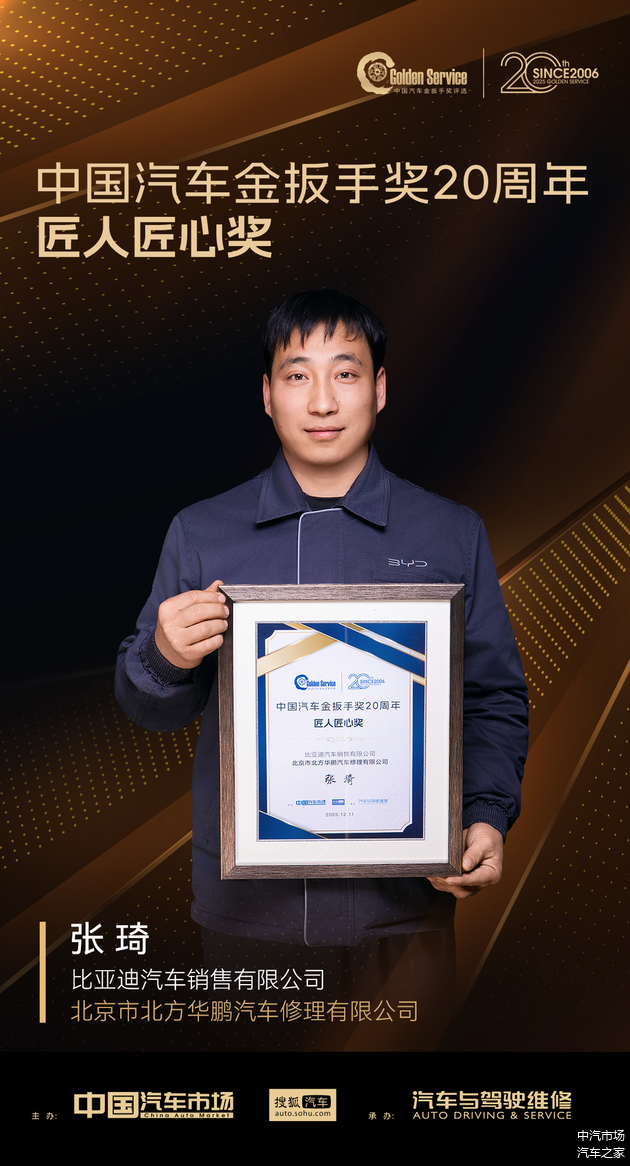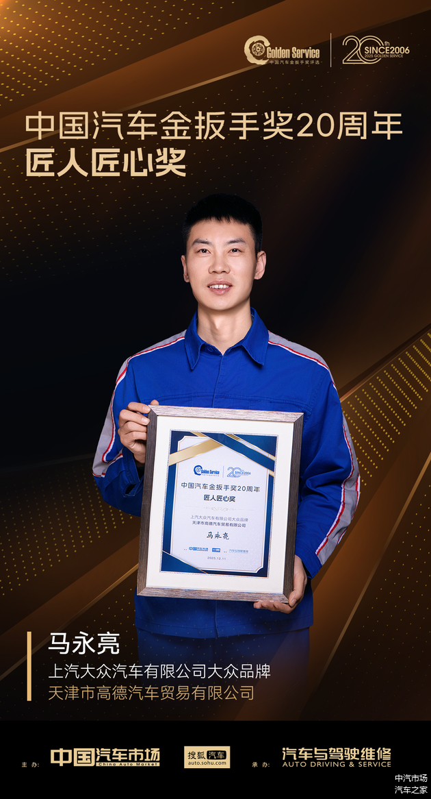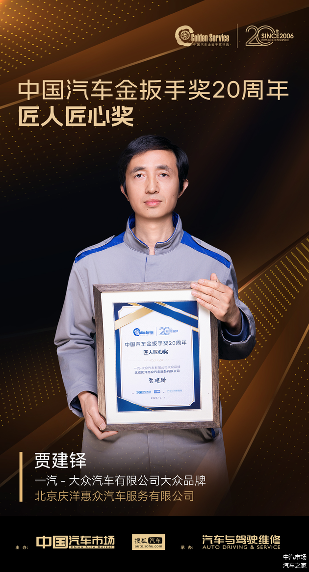 在“中国汽车金扳手奖”创立二十周年之际,我们同期举办了“中国汽车金扳手奖20周年·匠人匠心奖”评选活动,致敬那些坚守服务一线、诠释精益求精的资深技师。他们以精湛技艺守护品牌承诺,用岁月沉淀诠释服务匠心,是车企售后服务坚持长期主义的写照。