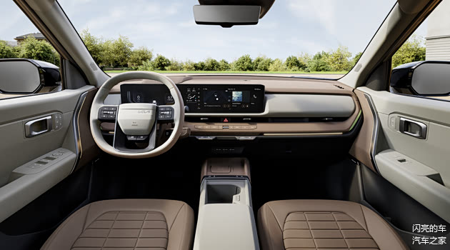 中控屏下方为隐藏式前排空调出风口以及保留了一些功能性的实体按键,下方的扶手区域配备了USB充电口、无线充电面板、杯架等功能。新车还搭载了一套起亚最新的高级辅助驾驶系统,支持HDA2、LFA2、FCA2、SEW、SVM等诸多辅助功能。新车还提供了全景天窗、抬头显示、哈曼卡顿或者Bose高级音响系统、64色氛围灯等多种选配功能。另外,第二排座椅不但支持前后各12英寸移动,还支持完全放平,从而带来更大的后备箱空间。