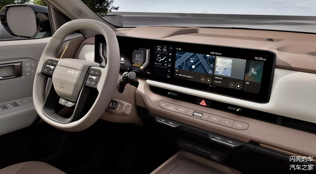 在内饰上也做出了较大的升级,虽然是一款燃油车,但内部的布局和配置基本上延续了起亚电动车的设计风格,配备了12.3英寸的数字仪表盘和12.3英寸的中控屏,在两块屏幕之间还设置了一小块单独的空调控制面板,并且采用了三联屏的设计,官方表示总尺寸达到了30英寸。车机系统支持远程OTA,并且内置了基于ChatGPT的AI助手(国内可能会更换为其它大模型)。