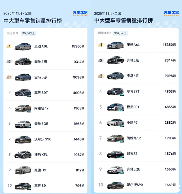 不是特斯拉,也不是雷克萨斯,而是这个正式交付没多久的新系列: 享界S9与S9T,稳稳卡在了奔驰、宝马、奥迪之后,位列第四。
