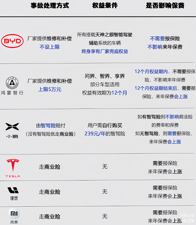 没错,正所谓没有对比就没有伤害,作为行业唯二为智能泊车提供安全兜底的鸿蒙智行,它的兜底方案是有效期12个月和赔付上限5万元,且只有部分车型能享受该权益,这也就意味着但凡碰撞到前后保险杠的高精感知硬件,仅5万元的赔付额度,大概率不够用,并且出了12个月的“新手保护期”,就要自行承担损失了。
