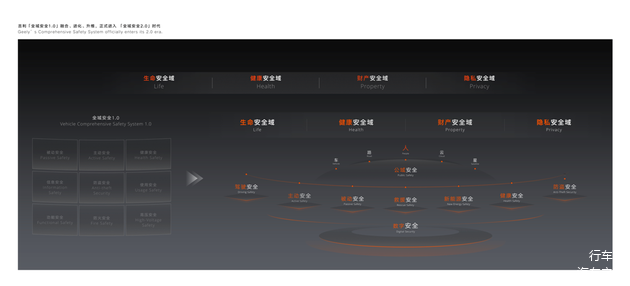 作为行业安全技术的先行者与引领者,吉利在“全域AI”技术体系的赋能下,以“AI为纲 责任为本”,基于原有的“全域安全”技术体系进阶打造“全域安全2.0”技术体系。结合智能时代的安全新需求和新挑战,“全域安全2.0”技术体系秉持“以人为尊”理念,通过技术升级、能力突破与范式创新,将侧重“整车安全”的视角升级为“人-车-路-云-星”的生态视角,旨在贯穿用户出行全场景、覆盖出行全领域、联动出行全生态;并以“生命零伤亡、健康零危害、财产零损失、隐私零泄露”四大安全愿景为指引,逐步构建的一套为消费者提供全面的安全保障技术体系。