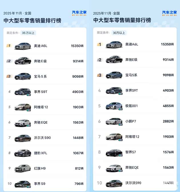 近日,11月汽车品牌销量公布,鸿蒙智行享界轿旅双子星 享界S9T、享界S9持续发力,在中大型车豪华轿车零售销量排名中,享界品牌紧随BBA,跻身前四。
