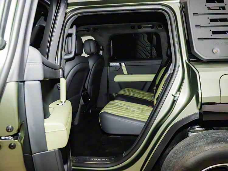 拉开车门,“未来先锋机甲”内饰风格与外形呼应,横平竖直的线条、大量金属质感材质与豪华软包的碰撞,营造出“金属风暴”意境。中控台对称布局,视觉上向两侧延伸。金属质感飞航旋钮设计灵感源于战斗机仪表,、用于切换多种驾驶模式,仪式感很强。车内门把手造型如手枪握柄,关门声也经过特别调校,进一步强化了硬核氛围。全车高达32平方米的软质包覆,其中接触面大量使用Nappa真皮,触感细腻,顶棚则采用绒质面料,A柱提供越野拉手,副驾前面配有开放式储物槽,整个内饰将硬派越野的豪放与座舱的豪华舒适结合的很到位。