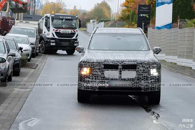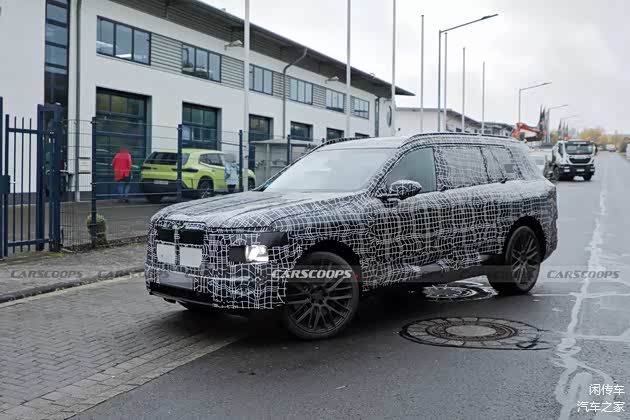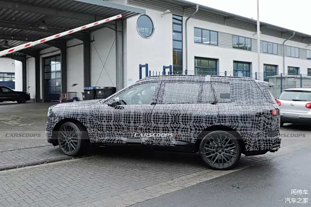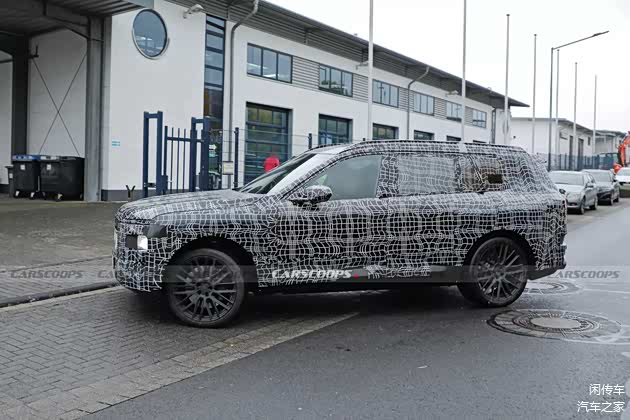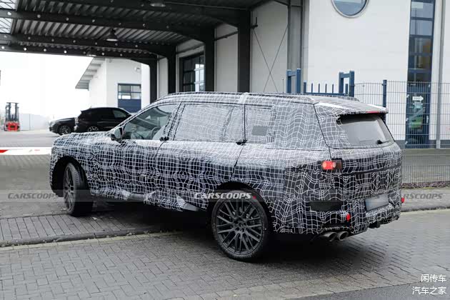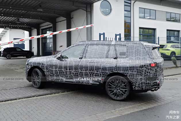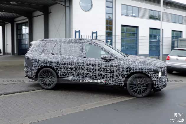 车身侧面,该车则延续了宽大修长线条的同时,A柱设计了极大的倾斜角度,这在此前的宝马车型上还并不多见多少,让人想起一些现代胜达等车型的感觉。平直的车身姿态不会变化,独特的车门拉手,在此前的全新X5车型上已经有出现,类似于林肯大陆,而D柱则非常的垂直,与大幅度倾斜的A柱形成了鲜明的对比,整体的车身姿态似乎不算太高,也可能是车身长度进一步加长,影响了视觉的感受,大尺寸轮毂,较高离地间隙等元素不会缺席,通过性方面不需要担心。