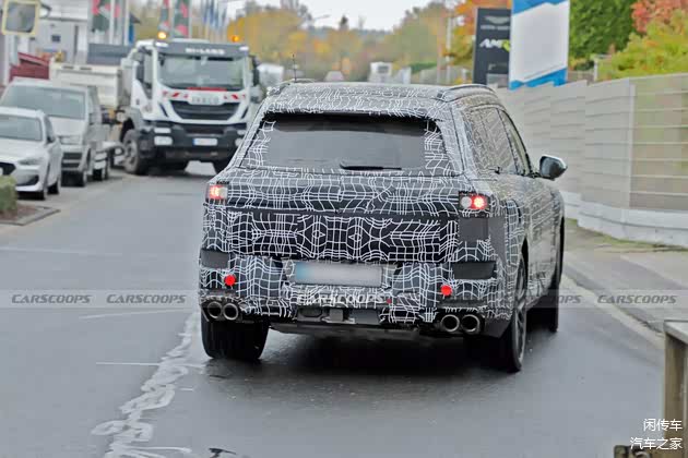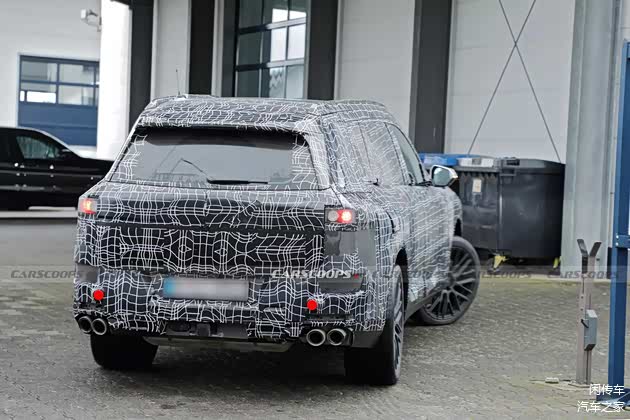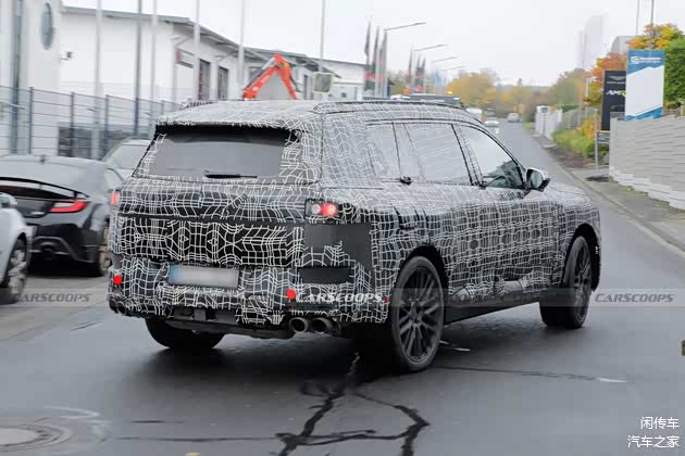 而车尾部分则明显仍呈试装状态,尾灯应该是扁平的造型,符合最新的家族风格,车顶有着明显的下坠,引出了车顶扰流板,后风挡尺寸不大,较老款也有风格上的不同,尾箱线条相对方正,后保险杠部分双边四出排气,显示了性能车的基因,也显示了燃油内燃机为主的身份。在内饰部分则并没有直接的谍照曝光,但从车侧谍照也可以隐约看出,天际屏或者说P-hud设计不会缺席,悬浮式大尺寸液晶屏也应该是最新的调色风格,至于怎样和X3和3系两款中型车拉开差距,体现旗舰级车型的身份,由于伪装太厚,目前还看不出太多的内容,但个性的方向盘,拨杆式换挡的元素,应该都会得到实装。