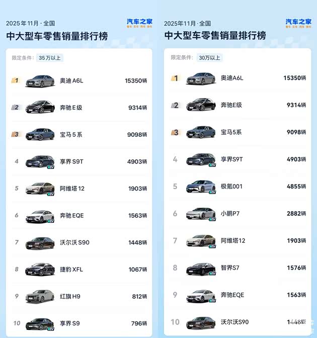 豪华轿车品牌四分天下时代来了,11月汽车品牌销量公布